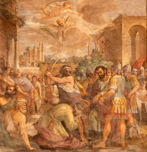 As was the custom, the brothers were given the opportunity to publicly renounce their faith and honor the Roman gods to save their lives. They refused and were sentenced to death. Various legends surrounding their deaths state that they were first tortured in an attempt to get them to comply with the prefect’s wishes. However, they were miraculously preserved from suffering, sustaining no injuries. Multiple attempts were then made to kill them by drowning, fire, arrows, and stoning, but each attempt failed. Finally, Cosmas and Damian, along with three of their brothers, were beheaded.